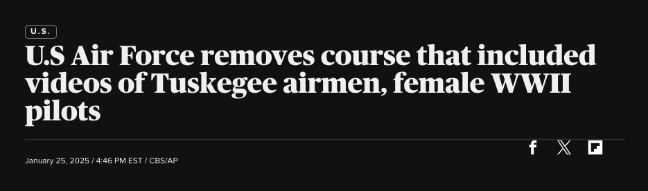 Removal of Tuskegee Airman, Navaho Talkers and Jackie Robinson from DoD websites.